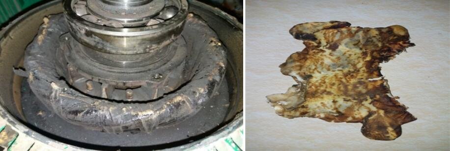3月2日,龍銀所站內(nèi)循環(huán)泵電機(jī)故障。當(dāng)檢修人員拆解后發(fā)現(xiàn)電機(jī)頂端風(fēng)扇葉融化(右圖),已根本看不到本來的形狀。拆下端蓋后電機(jī)內(nèi)部有明顯燒焦味,絕緣繃帶完全碳化。經(jīng)過調(diào)查得知電機(jī)停止后測溫達(dá)到120℃。據(jù)多方詢問,往年電機(jī)運(yùn)行正常無高溫、異響等情況。2016年新接入新增2萬平面積和用戶私改地暖導(dǎo)致超出10萬平設(shè)計(jì)面積,使電機(jī)超負(fù)荷運(yùn)行而損壞。