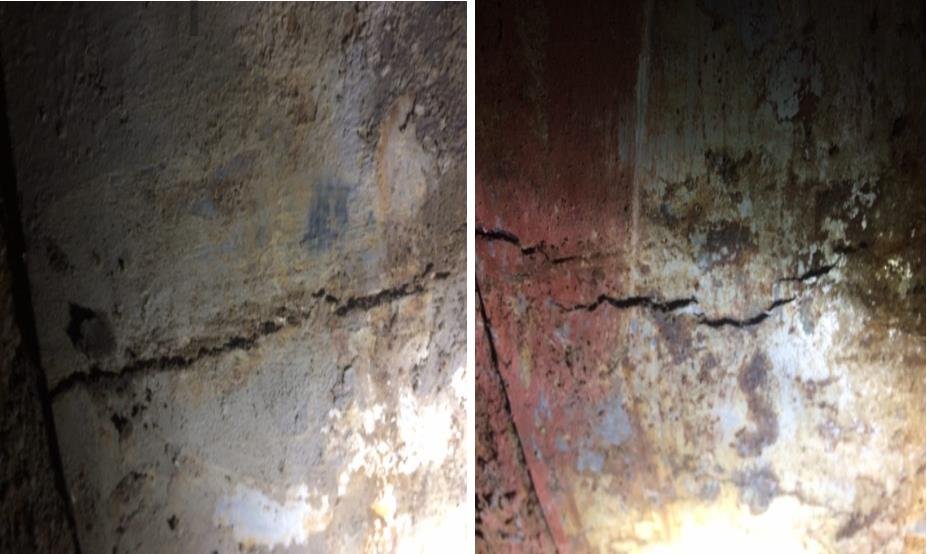 4月25日 檢修在進(jìn)行正常井下維護(hù)工作的時候,發(fā)現(xiàn)我公司所轄熱力井M10井內(nèi)補(bǔ)償器滑道出現(xiàn)裂縫。由于波紋補(bǔ)償器不斷拉伸壓縮,出口端環(huán)與出口管存在間隙,污水污泥等沉積在補(bǔ)償器內(nèi)部表面,以致補(bǔ)償器發(fā)生應(yīng)力腐蝕,從而導(dǎo)致開裂。
