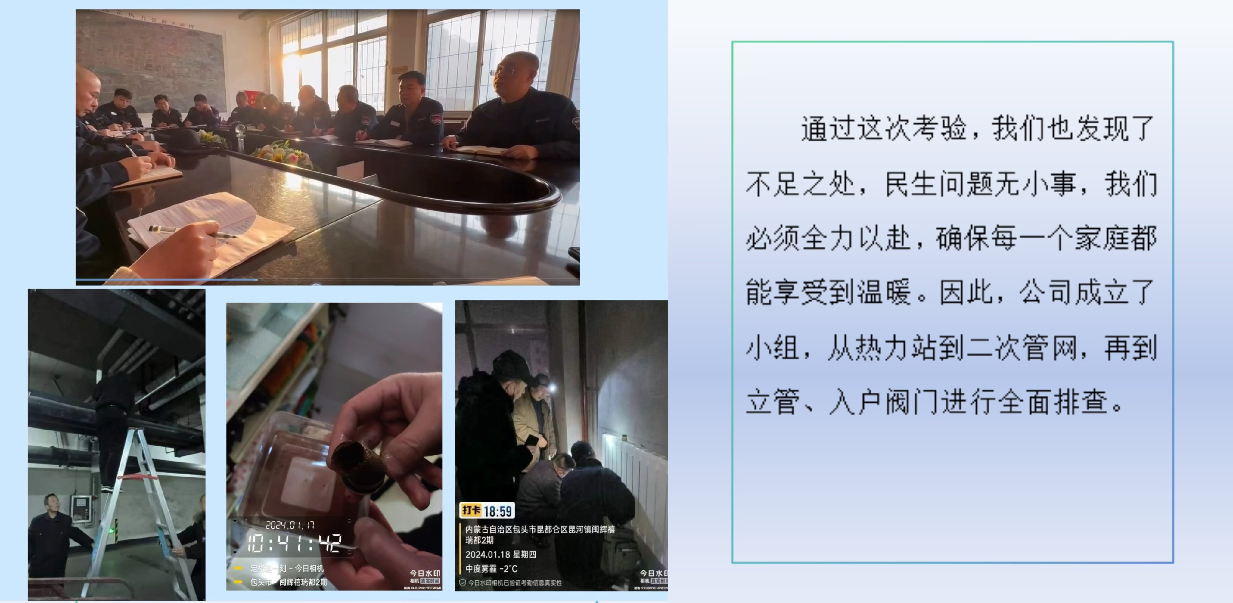 面對大雪后的寒潮,我們的城市經(jīng)歷了斷崖式的降溫,這對供熱人來說無疑是一次嚴峻的考驗。 我們的使命就是提供最優(yōu)質的供熱服務。為了實現(xiàn)這一使命,公司全體員工將全力以赴,保障本年度的供熱工作。我們將繼續(xù)努力提升供熱服務質量,以滿足廣大市民的需求。