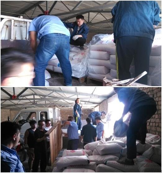 8月15日,公司采購一批水處理設(shè)備所需樹脂共計(jì)6噸放置檢修大院待用。由于貨物多,人手不夠,于是從各部門抽調(diào)年青力壯的同事參加搬運(yùn)工作。大家頂著室外環(huán)境二十八九度的高溫速戰(zhàn)速?zèng)Q將兩車貨物卸下并碼放整齊。半個(gè)小時(shí)下來,有的同事后背已全部濕透。下圖為大伙齊心協(xié)力搬運(yùn)貨物。