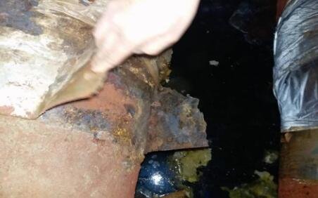 5月8日,公司各主要部門對檢修完成的熱力站進行了驗收工作。檢修對運行車間上報的維修內容全部完成。往年遺留的基建問題仍無法處理。共驗收5個熱力站其中景富A、古城、景富C房頂漏水、地坑無蓋板,永茂泉地基下沉嚴重。驗收結束對M7井進行查看,發(fā)現井下套筒補償器內襯不銹鋼皮破損嚴重,管路腐蝕嚴重。如下圖