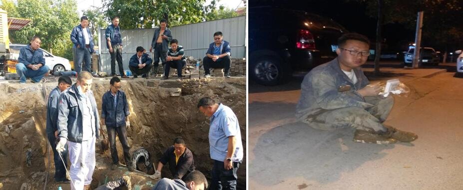 為不影響按時供熱,此次搶修歷時30多小時,公司高、中層領(lǐng)導(dǎo)全程參與指揮調(diào)度。接近10月的夜晚比較陰冷,搶修人員就這樣穿著淌著泥水的衣服隨便吃一口,便又進入泥坑中繼續(xù)挖掘故障管路。