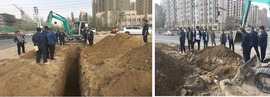 由于房屋拆遷,導(dǎo)致我公司校園南路與林蔭路路口處南邊熱力井被埋。影響檢修人員對熱力井的維護(hù)。在人工無法找到的情況下,公司劉總、胡總親自趕赴現(xiàn)場,在確定了大致范圍后動用小型挖掘機(jī)進(jìn)行挖掘,經(jīng)過大家一下午的努力后,終于找到了熱力井所在位置,并且重新做好標(biāo)識,保證了我公司設(shè)備的完好。