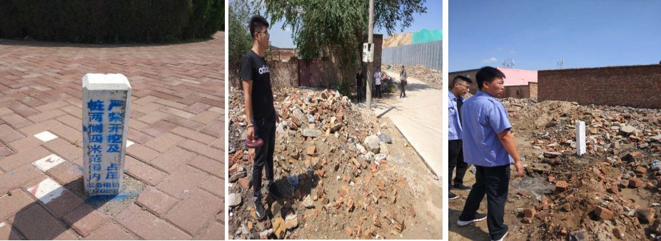 本月,測(cè)繪人員按我公司要求繼續(xù)對(duì)我公司管線進(jìn)行測(cè)量定位。我公司隨行設(shè)備部與技術(shù)部人員同時(shí)對(duì)已測(cè)量到的拐點(diǎn)進(jìn)行了位置標(biāo)記,同時(shí)公司劉總也親赴現(xiàn)場(chǎng)查看了測(cè)量進(jìn)度并做出指示。右圖為校園南路吾悅廣場(chǎng)南墻外所探測(cè)位置,并且立樁定標(biāo)。